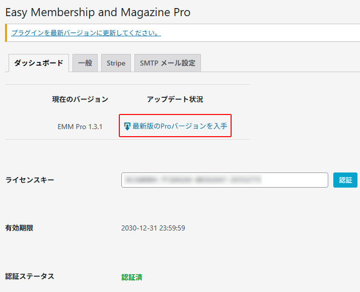 - 「最新版のProバージョンを入手」をクリックしてEMM Proのアップデートを行います